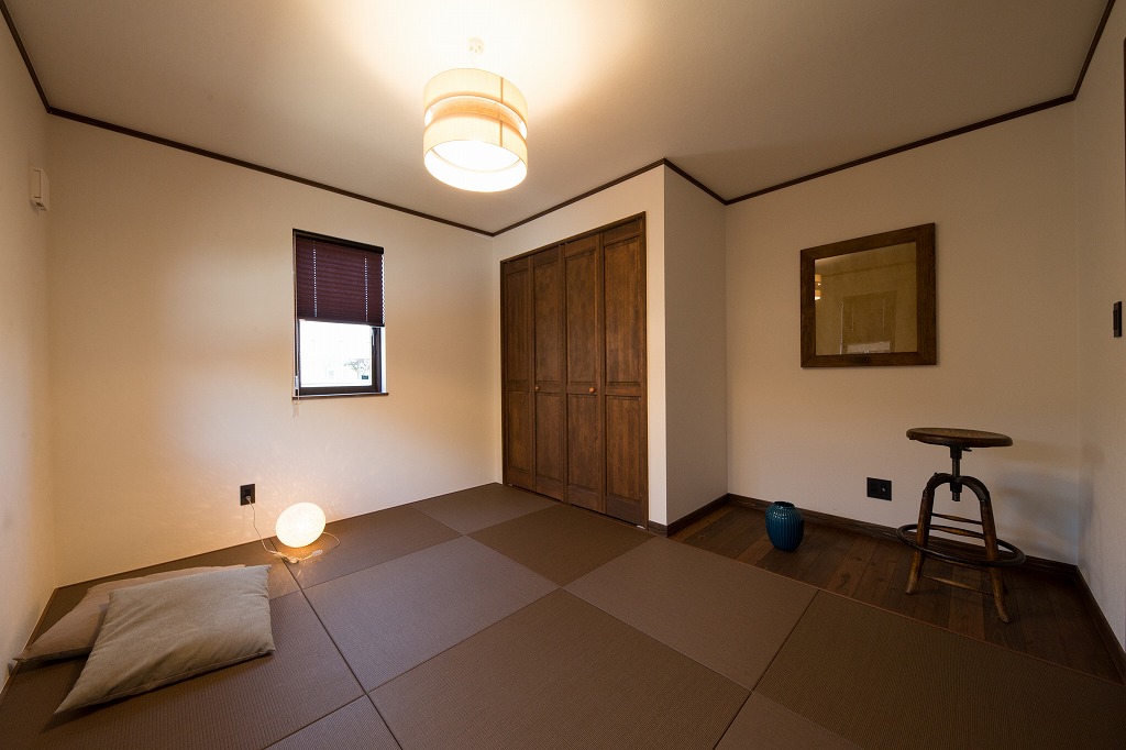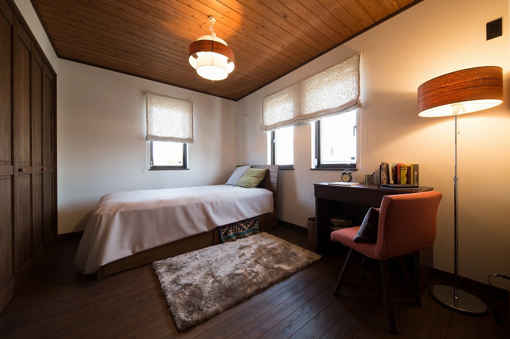 屋根の形にそった勾配天井と壁の一部に羽目板を配置することで、木のやさしい風合いに包まれた癒しの時間をご提供します。