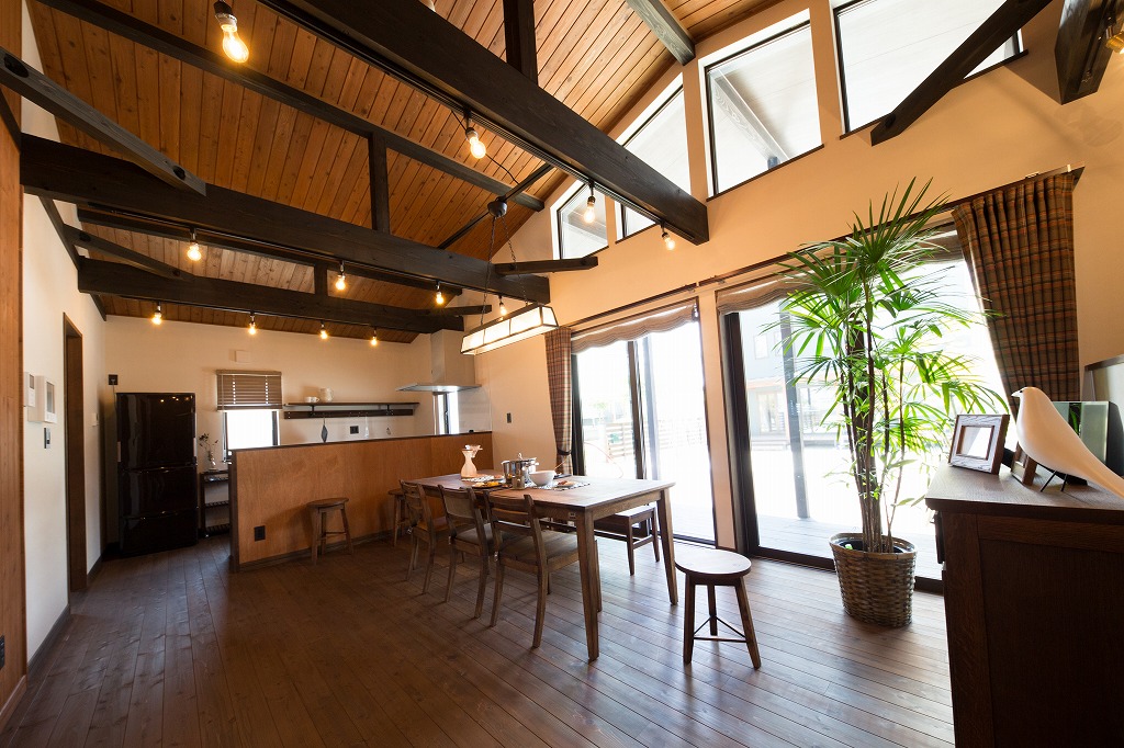 リビングダイニングには、天井まで伸びた大開口の窓を設置。